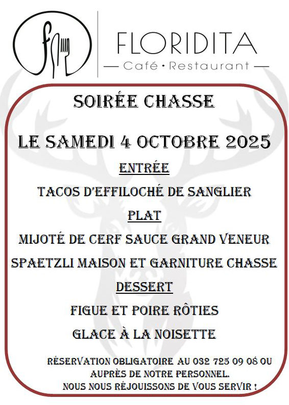 Formule plat 20.50- / entrée + plat 24.- / entrée + plat + 2dl minérale et café 28.-